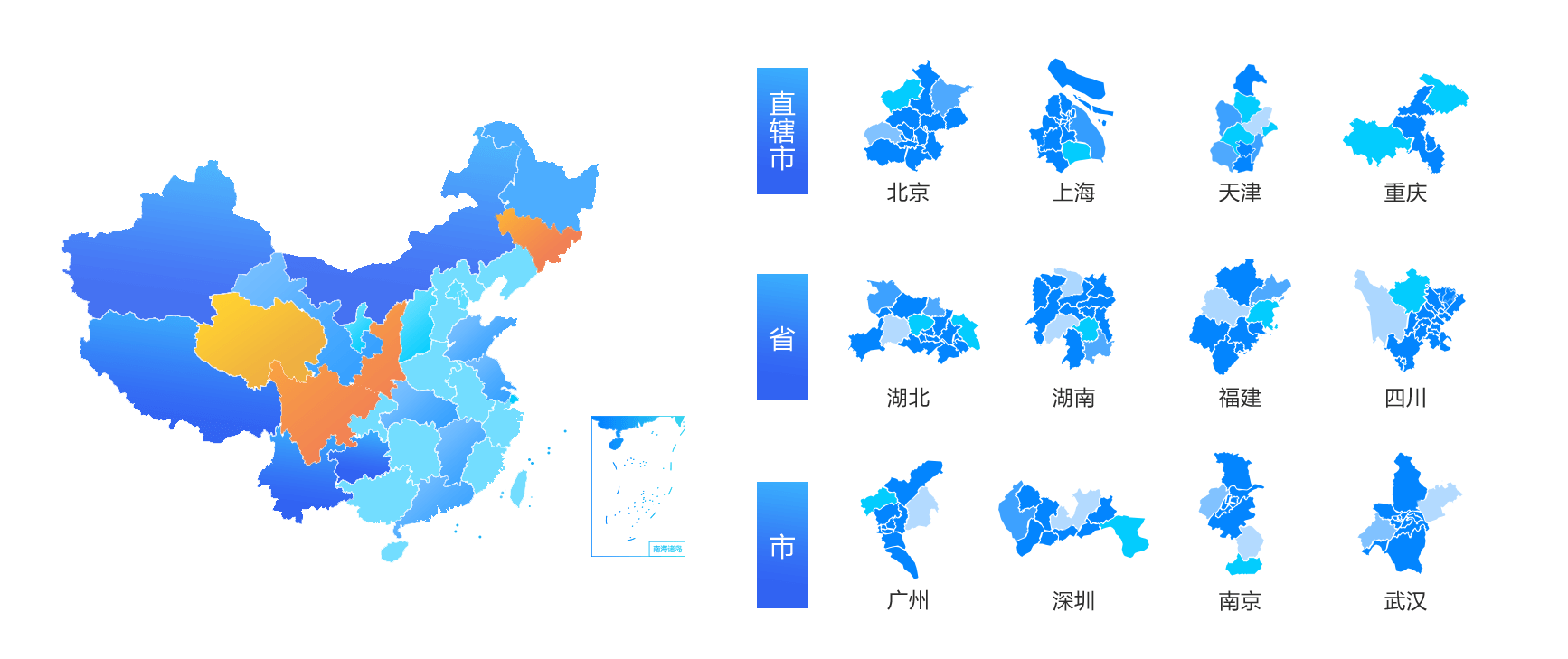 內(nèi)置五大洲及世界地圖、中國地圖,囊括中國34個省239個市區(qū)縣的地圖,地圖類型包塊FLASH、圖片和HTML5格式,同時支持個性化定制地圖。