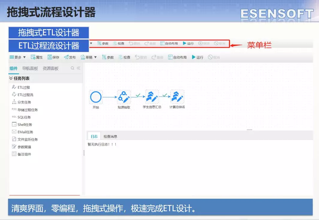 ETL通常通過圖形化的配置方式,簡單,靈活,使得用戶無需過分關心數據庫的各種內部細節,而專注于功能。