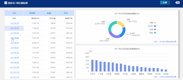 億信ABI能做的圖表分析是Excel無法實現的高級功能,比如:圖表鉆取。當你點擊圖表中的某一個數據,讓圖標跳轉展示點擊數據的更詳細的數據。逐層下鉆的功能,將匯總的數據逐次展示到細節數據進行觀察,清晰明了。